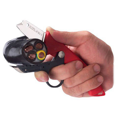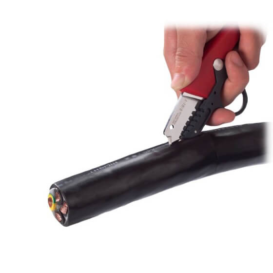 A sharp electrical knife that safely cuts and strips up to 50mm OD cables. The VT-3991 Submarine Knife is not only one of the sharpest knives in the market but it is also one of the safest. Designed with a versatile blade guard and tipped with a metal guide shoe to help peel cable jackets and six molded notches of varying size for wire stripping. Leverage is a key component when doing anything with your hands and the Submarine Knife gives you the ability to operate it safely with just one hand. |
