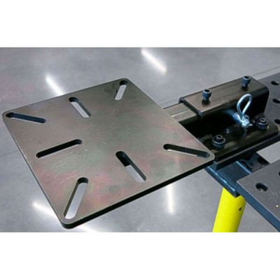 Keep your work surface clear and eliminate the need for dedicated machine stands with this handy receiver mount. Featuring a 6 inch square mounting surface with 5/8 diameter holes on 4 in centers, it can be easily attached to your own workbench, Buildpro, or Certiflat welding tables. The mount also features two sets of jam bolts to produce a rock-solid fit.The receiver is designed to accept 2 x 3/16 inch wall square tubing.