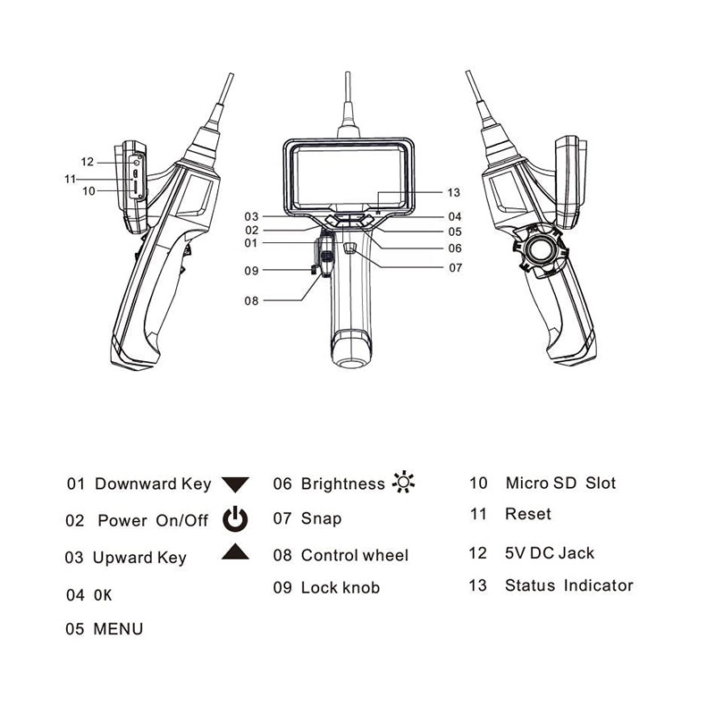 | Vividia CT-4010 LCD/WiFi Waterproof Two-Way Articulating Video Borescope with 4.5" Monitor and 4mm Diameter 1.0 Meter Long Probe |
