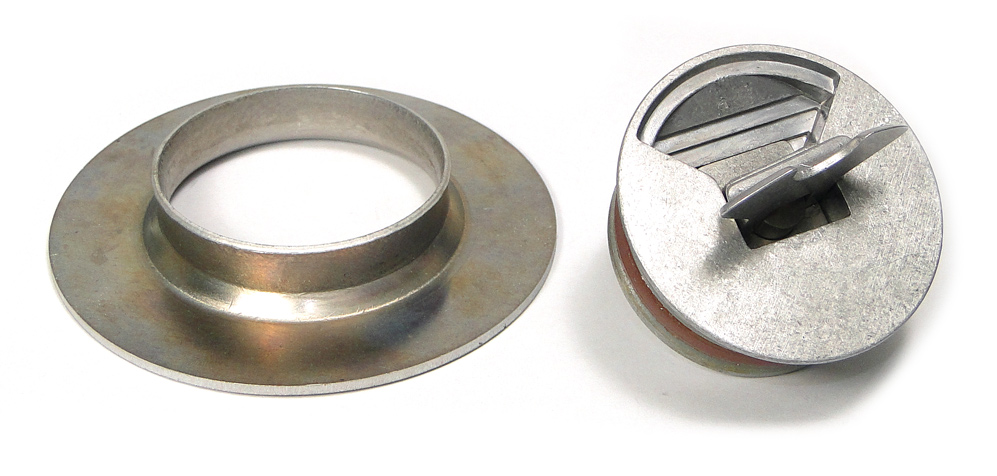 | The UD-3 flush fuel cap assembly is an unvented cap similar in design to the #5 style cap. The aluminum mounting ring has a 2" dia. opening and an overall dia. of 3-3/4 inch. It may be riveted, bolted or molded to the tank. It is currently used on many popular homebuilts such as the RV’s, Lancair, Velocity & White Lightning. Specify flat or contoured adapter. |
