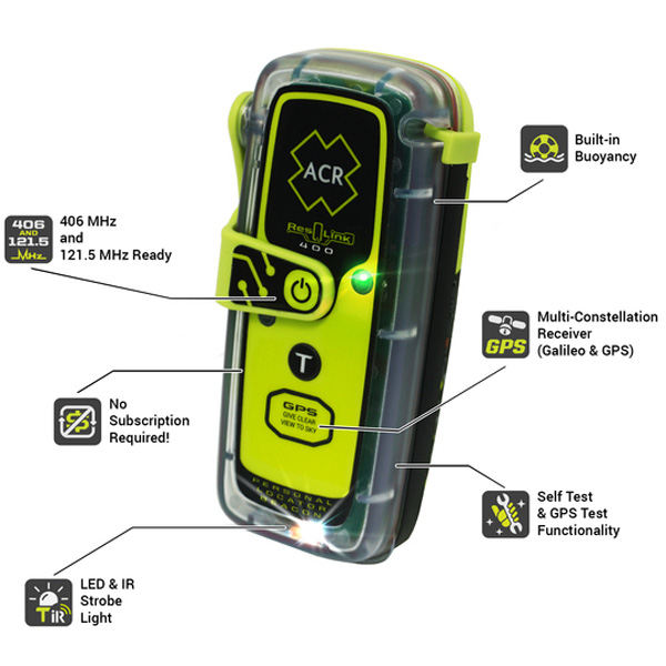 | Small but resilient, the ResQLink 400 has been professionally engineered and tested to ensure it can withstand even the harshest elements. This buoyant Personal Locator Beacon requires no subscription for use and can be utilized to enhance your safety in a wide variety of environments. Whether on land, at sea, or in the air, trust that the ResQLink¡¯s satellite precision and military durability, puts rescue in the palm of your hands. |