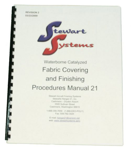 The Stewart Systems Procedures 21 Manual 3/23/09 edition is a complete written manual for the Stewart Systems Covering Process. It includes product application, painting instructions, continued airworthiness and more. This written manual is an excellent tool to keep in your shop while you are covering. The manual also contains many helpful hints for each step of the process. Language: English |