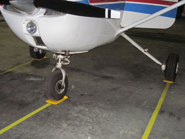 Hangar rash is the leading cause of ground handling insurance claims. Vector Chocks reduces the chance of hangar rash and will save you a considerable amount of money. Vector Chocks cradle the wheel with their unique ramp design and the energy yellow colored industrial grade safety tape will help guide you from the hangar door to your safe parking place. Installation is a snap with the peel-n-place feature, which sticks to asphalt as well as concrete.