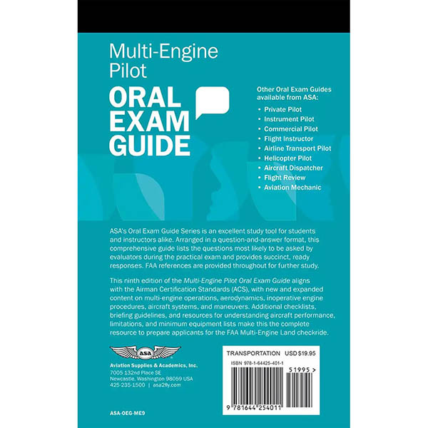 ASA’s Oral Exam Guide Series is an excellent study tool for students and instructors alike. Arranged in a question-and-answer format, this comprehensive guide lists the questions most likely to be asked by evaluators during the practical exam and provides succinct, ready responses. FAA references are provided throughout for further study. This ninth edition of the Multi-Engine Pilot Oral Exam Guide aligns with the Airman Certification Standards (ACS), with new and expanded content on multi-engine operations, aerodynamics, inoperative engine procedures, aircraft systems, and maneuvers. Additional checklists, briefing guidelines, and resources for understanding aircraft performance, limitations, and minimum equipment lists make this the complete resource to prepare applicants for the FAA Multi-Engine Land checkride. |