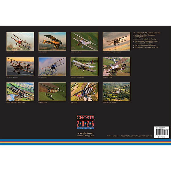 Step back in time with the Ghosts Great War 2026 Wall Calendar, featuring a collection of breathtaking air-to-air color photographs by renowned aviation photographer Philip Makanna. Each month unveils a new visual spectacle of World War I aircraft, captured in stunning detail and vibrant colors, making this calendar not just a tool for organization but a gallery of historical art.