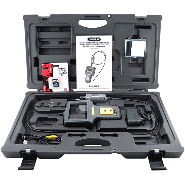 Ideal for making high-quality video and photo inspections of inaccessible or hard-to-see areas of vehicles, environments and industrial equipment. Combines H16 console of DCS1600 Recording Video Inspection System with 1m (3.3 ft.) long P16181HP High-Performance Probe.